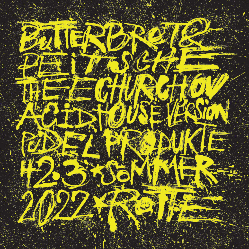 “Butterbrot und Peitsche“ ist der originär zweite Speakmusik-Hybrid von Rotte und der Säurekirche und wieder möchte die Wiederholung Thema sein und auch eben nicht, weil Wiederholungen als MÜDE gelten, als KOPIE und als UNFRESH. Das ist natürlich ein Quatsch vor dem Herrn. Im doppelten U-Turn liegt eine mächtige Kraft, das wissen alle, die nicht alles dumm hinter sich lassen, sondern das Gleiche nochmal anders sagen, nochmal den schönen Effekt der Zweitschrift genießen können. Same same, but different.